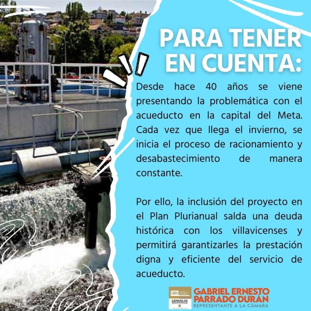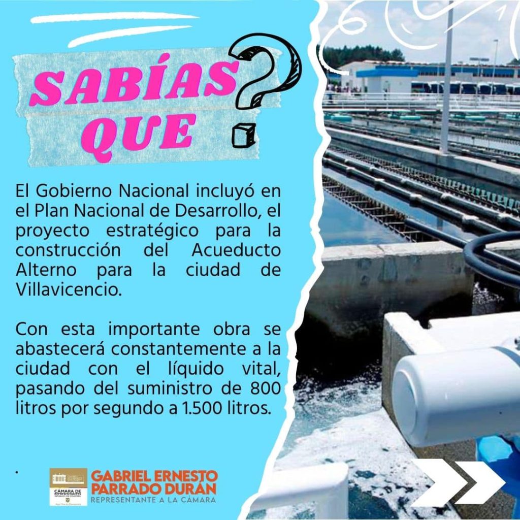 Desde esta curul presentamos una proposición para que el Gobierno Nacional incluyera dentro del Plan Nacional de Desarrollo, el proyecto que permite la construcción de un acueducto alterno para Villavicencio.